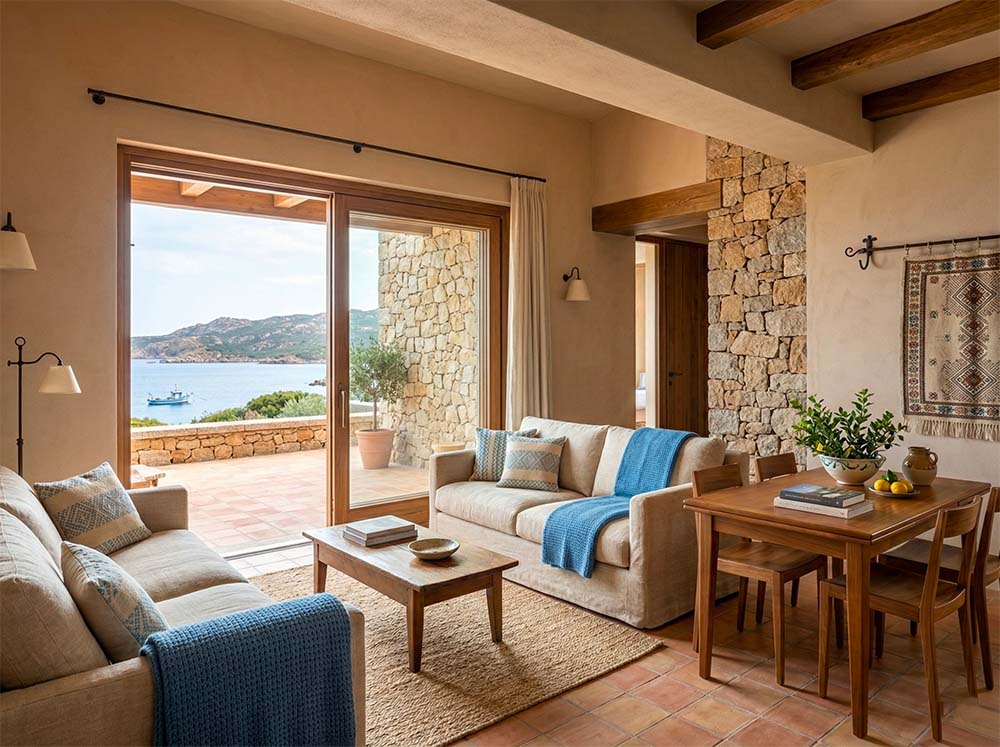 Ogni villa o appartamento è progettato attorno alle tue esigenze, con una cura maniacale per i dettagli e le tradizioni architettoniche sarde.